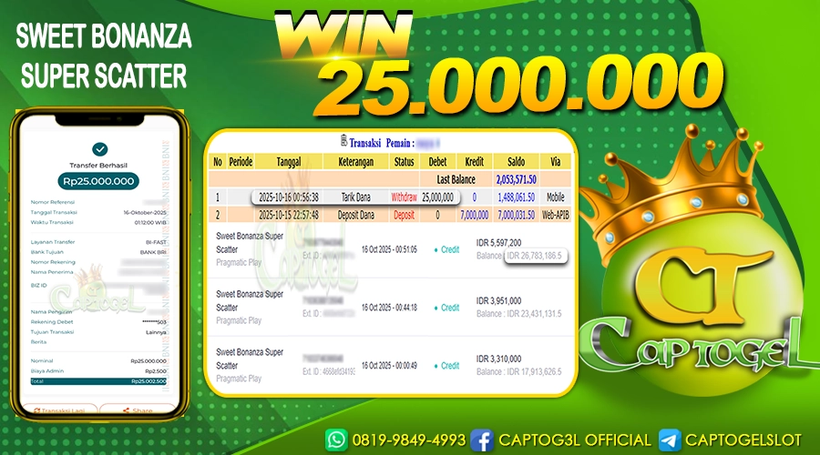Read moreCAPTOGEL – Selamat Kepada Pemenang User ID: wau*** dalam permainan SWEET BONANZA SUPER SCATTER sebesar Rp 25.000.000 16 OKTOBER 2025 – bermain di situs game […]