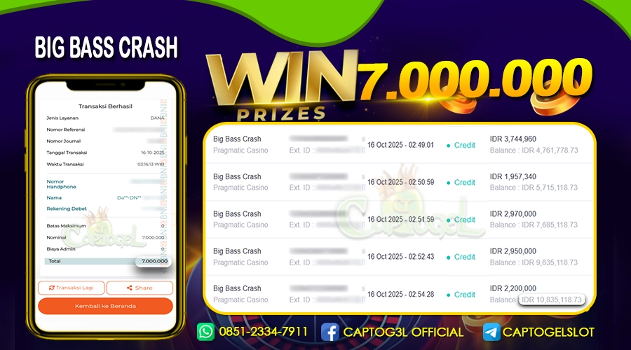 Read moreCAPTOGEL – Selamat Kepada Pemenang User ID: g1o*** dalam permainan BIG BASS CRASH sebesar Rp 7.000.000 16 OKTOBER 2025 – bermain di situs game online […]