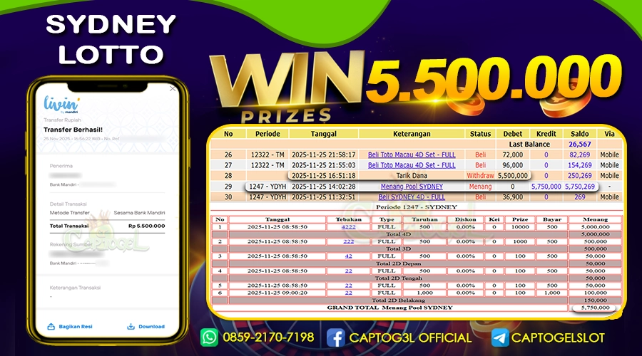 Read moreCAPTOGEL – Selamat Kepada Pemenang User ID: bu2*** dalam permainan SYDNEY LOTTO sebesar Rp 5.500.000 25 NOVEMBER 2025 – bermain di situs game online terpercaya […]