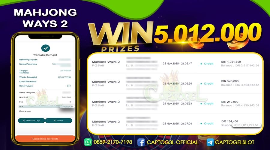 Read moreCAPTOGEL – Selamat Kepada Pemenang User ID: kug*** dalam permainan MAHJONG WAYS sebesar Rp 7.000.000 26 NOVEMBER 2025 – bermain di situs game online terpercaya […]