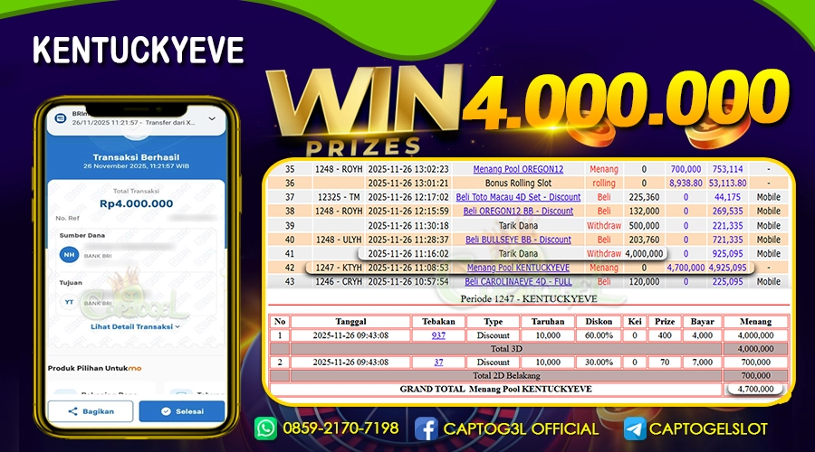 Read moreCAPTOGEL – Selamat Kepada Pemenang User ID: yul*** dalam permainan KENTUCKYEVE sebesar Rp 4.000.000 26 NOVEMBER 2025 – bermain di situs game online terpercaya yang […]