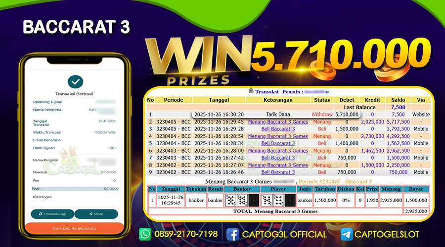Read moreCAPTOGEL – Selamat Kepada Pemenang User ID: ugr*** dalam permainan BACCARAT 3 sebesar Rp 5.710.000 26 NOVEMBER 2025 – bermain di situs game online terpercaya […]