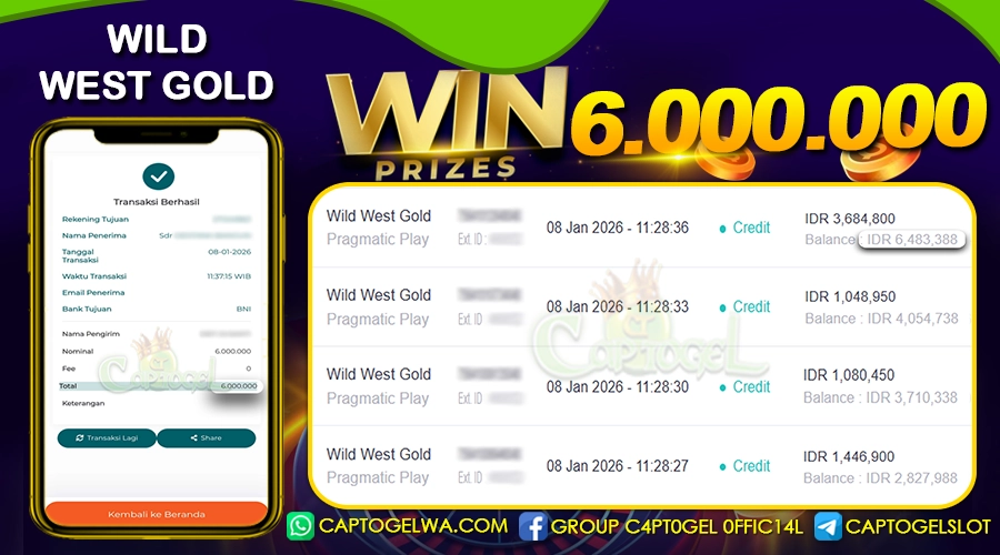 Read moreCAPTOGEL – Selamat Kepada Pemenang User ID: je***m dalam permainan WILD WEST GOLD sebesar Rp 6.000.000 08 JANUARI 2026 – bermain di situs game online […]