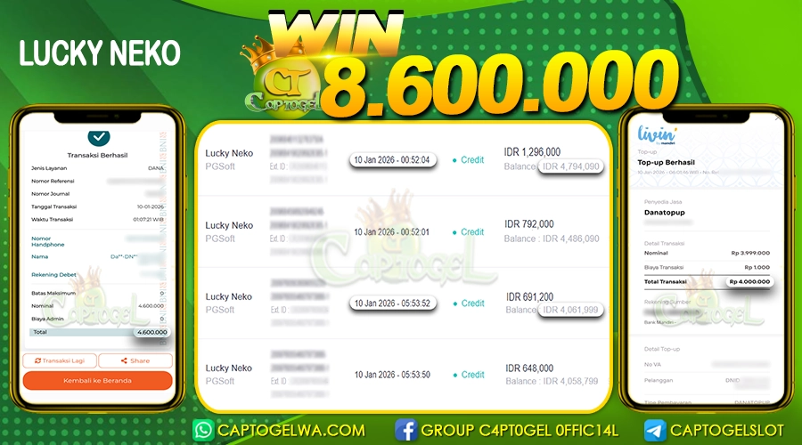 Read moreCAPTOGEL – Selamat Kepada Pemenang User ID: ry***y dalam permainan LUCKY NEKO sebesar Rp 8.600.000 10 JANUARI 2026 – bermain di situs game online terpercaya […]