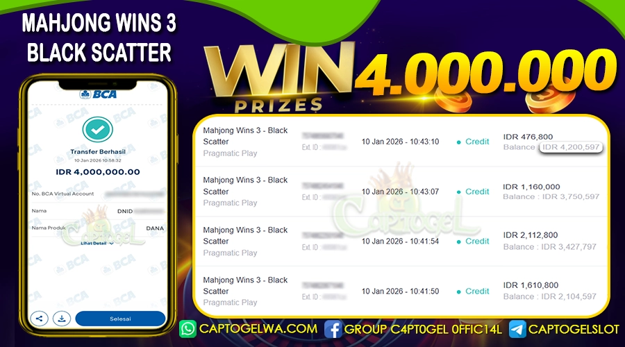 Read moreCAPTOGEL – Selamat Kepada Pemenang User ID: bi***v dalam permainan MAHJONG WINS 3 BLACK SCATTER sebesar Rp 4.000.000 10 JANUARI 2026 – bermain di situs […]