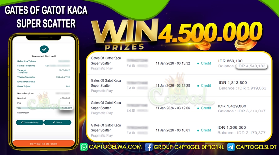Read moreCAPTOGEL – Selamat Kepada Pemenang User ID: uj***m dalam permainan GATES OF GATOT KACA SUPER SCATTER sebesar Rp 4.500.000 11 JANUARI 2026 – bermain di […]