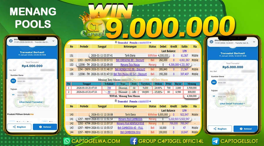 Read moreCAPTOGEL – Selamat Kepada Pemenang User ID: de***b dalam permainan CAMBODIA DAN TOTOMACAU sebesar Rp 9.000.000 11 JANUARI 2026 – bermain di situs game online […]