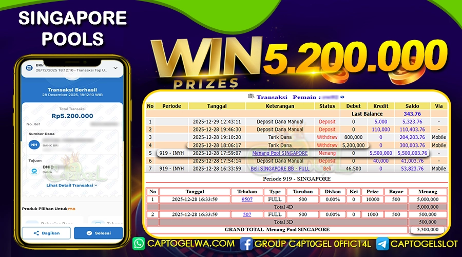 CAPTOGEL – Selamat Kepada Pemenang User ID: pr***e dalam permainan SINGAPORE POOLS sebesar Rp 5.200.000 28 DESEMBER 2025 – bermain di situs game online terpercaya […]