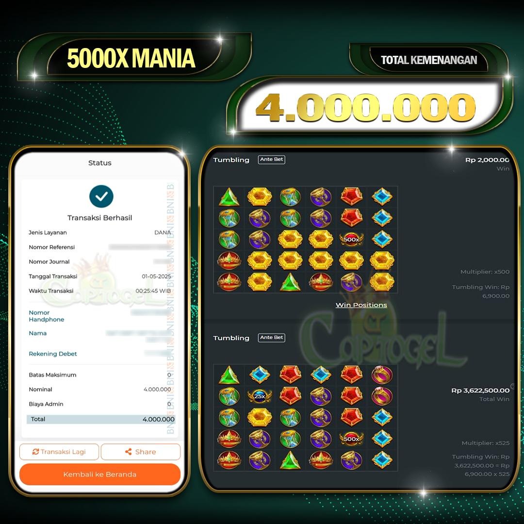 JACKPOT JP 5000X MANIA MENANGKAN CAPTOGEL 01 MEI 2025