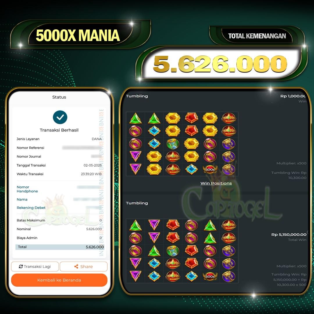 JACKPOT JP 5000X MANIA MENANGKAN CAPTOGEL 02 MEI 2025
