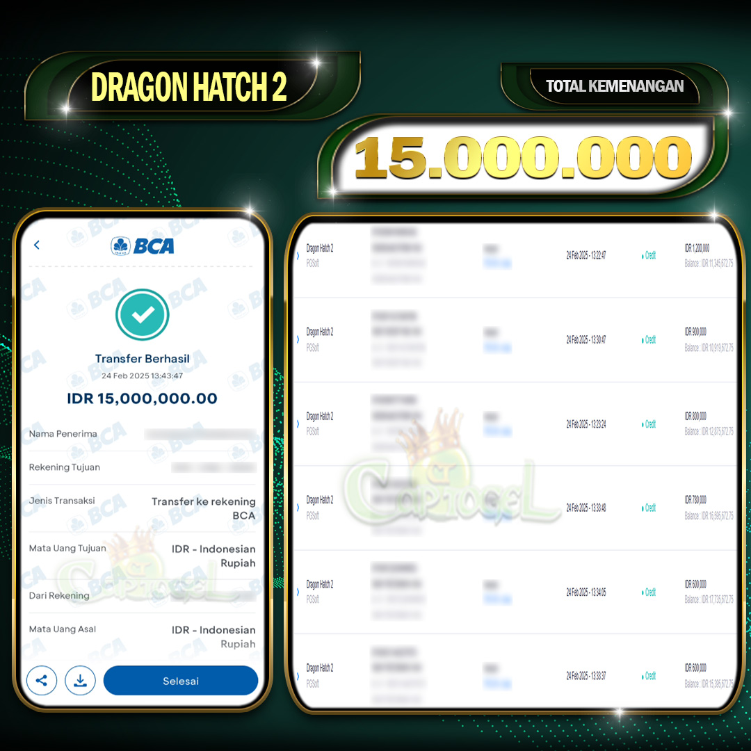 JACKPOT JP DRAGON HATCH 2 MENANGKAN CAPTOGEL 24 Februari 2025