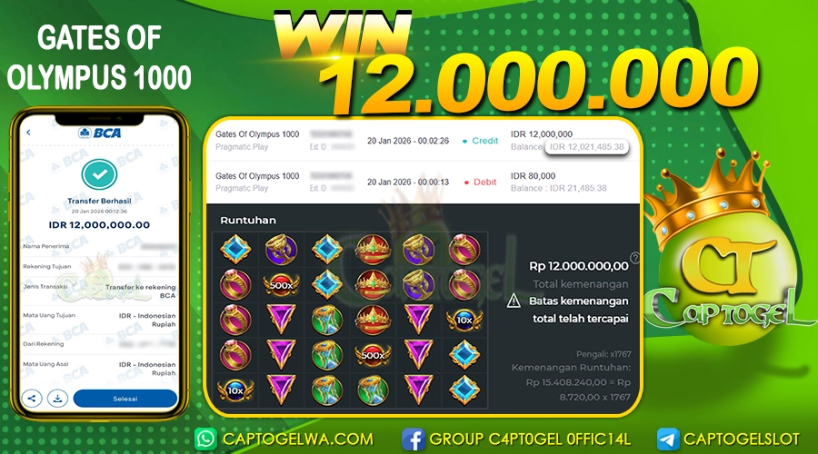 CAPTOGEL – Selamat Kepada Pemenang User ID: ir***a dalam permainan GATES OF OLYMPUS 1000 sebesar Rp 12.000.000 20 JANUARI 2026 – bermain di situs game online terpercaya yang telah terbukti dengan bukti jackpot (JP) yang resmi dan terjamin di Indonesia. Platform ini memberikan pengalaman bermain yang aman dan menyenangkan bagi para penggemar game online. Dengan hadirnya CAPTOGEL, pemain dapat menikmati kemudahan akses ke berbagai permainan seru, peluang untuk memenangkan hadiah besar, serta berbagai keuntungan menarik yang telah disiapkan khusus untuk member lama maupun member baru. CAPTOGEL dirancang dengan fokus pada kenyamanan dan keamanan pemain, memastikan bahwa setiap pemain dapat bermain dengan tenang, tanpa khawatir, dan meraih keuntungan maksimal. Dengan pembuktian kemenangan seperti yang diraih oleh User ID: ir***a dalam permainan JP GATES OF OLYMPUS 1000 , CAPTOGEL semakin menunjukkan komitmennya sebagai platform yang memberikan kesempatan menang nyata kepada para penggunanya.