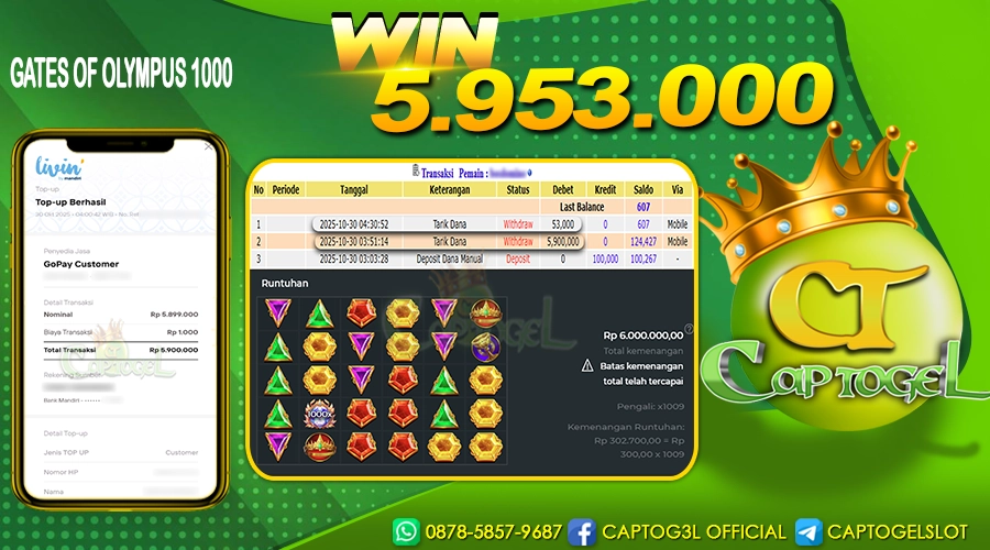 JACKPOT GATES OF OLYMPUS 1000 MENANGKAN DI CAPTOGEL 30 OKTOBER 2025