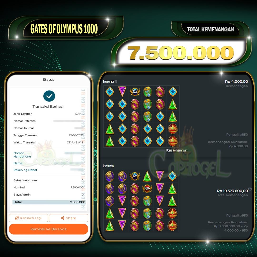 JACKPOT JP GATES OF OLYMPUS 1000 MENANGKAN CAPTOGEL 27 MEI 2025