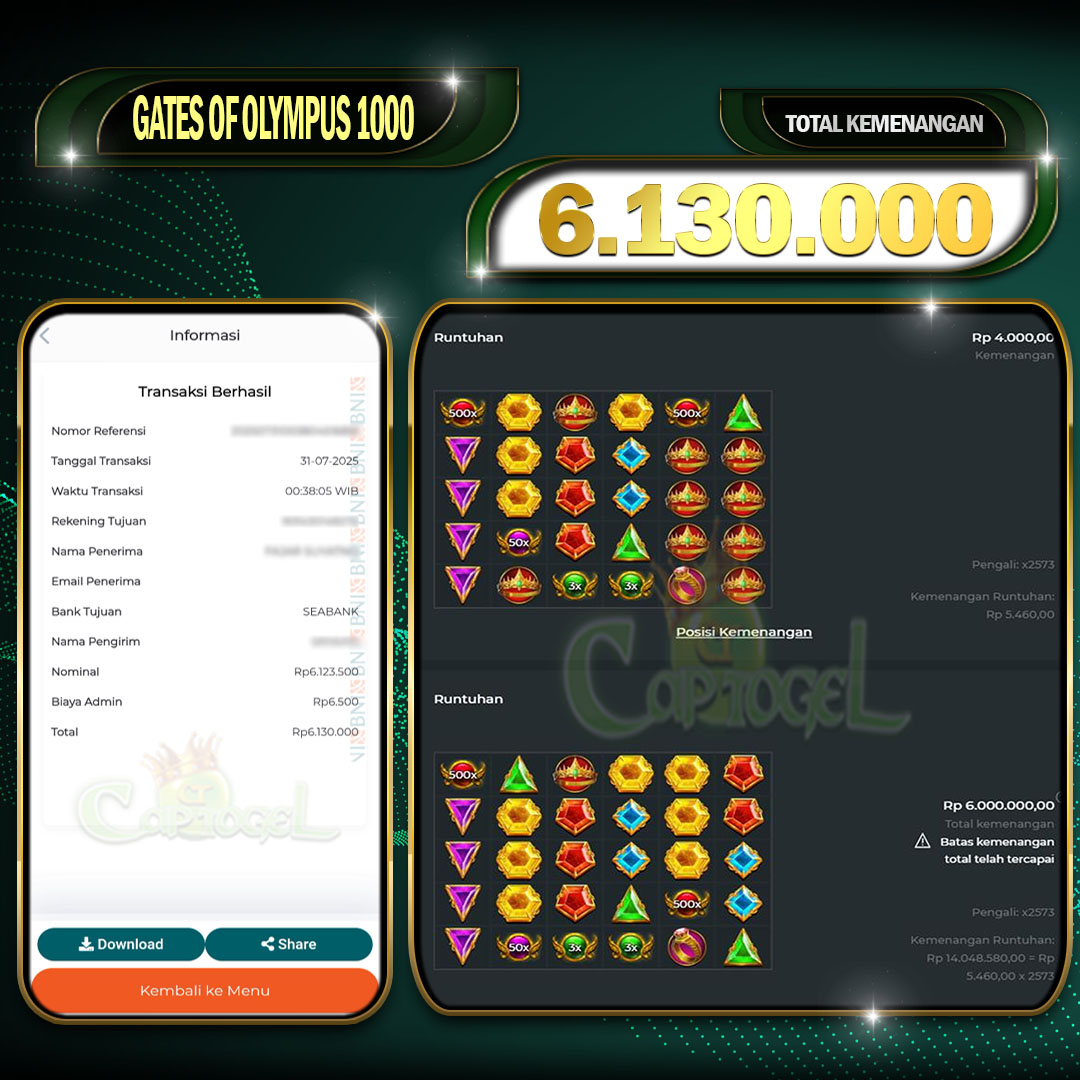 JACKPOT GATES OF OLYMPUS 1000 MENANGKAN DI CAPTOGEL 31 JULY 2025
