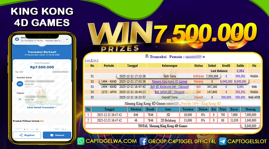 JACKPOT KING KONG 4D MENANGKAN DI CAPTOGEL 21 DESEMBER 2025