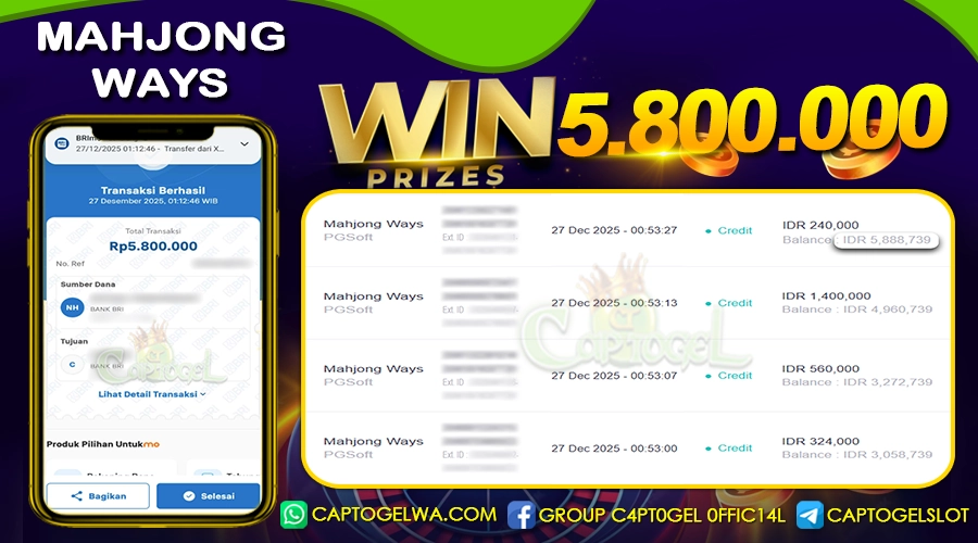 CAPTOGEL – Selamat Kepada Pemenang User ID: di***m dalam permainan MAHJONG WAYS sebesar Rp 5.800.000 27 DESEMBER 2025 – bermain di situs game online terpercaya yang telah terbukti dengan bukti jackpot (JP) yang resmi dan terjamin di Indonesia. Platform ini memberikan pengalaman bermain yang aman dan menyenangkan bagi para penggemar game online. Dengan hadirnya CAPTOGEL, pemain dapat menikmati kemudahan akses ke berbagai permainan seru, peluang untuk memenangkan hadiah besar, serta berbagai keuntungan menarik yang telah disiapkan khusus untuk member lama maupun member baru. CAPTOGEL dirancang dengan fokus pada kenyamanan dan keamanan pemain, memastikan bahwa setiap pemain dapat bermain dengan tenang, tanpa khawatir, dan meraih keuntungan maksimal. Dengan pembuktian kemenangan seperti yang diraih oleh User ID: di***m dalam permainan JP MAHJONG WAYS , CAPTOGEL semakin menunjukkan komitmennya sebagai platform yang memberikan kesempatan menang nyata kepada para penggunanya.