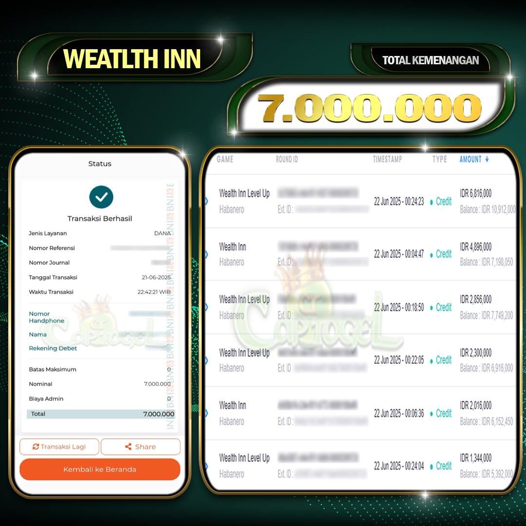 JACKPOT JP WEALTH IN MENANGKAN CAPTOGEL 22 JUNI 2025