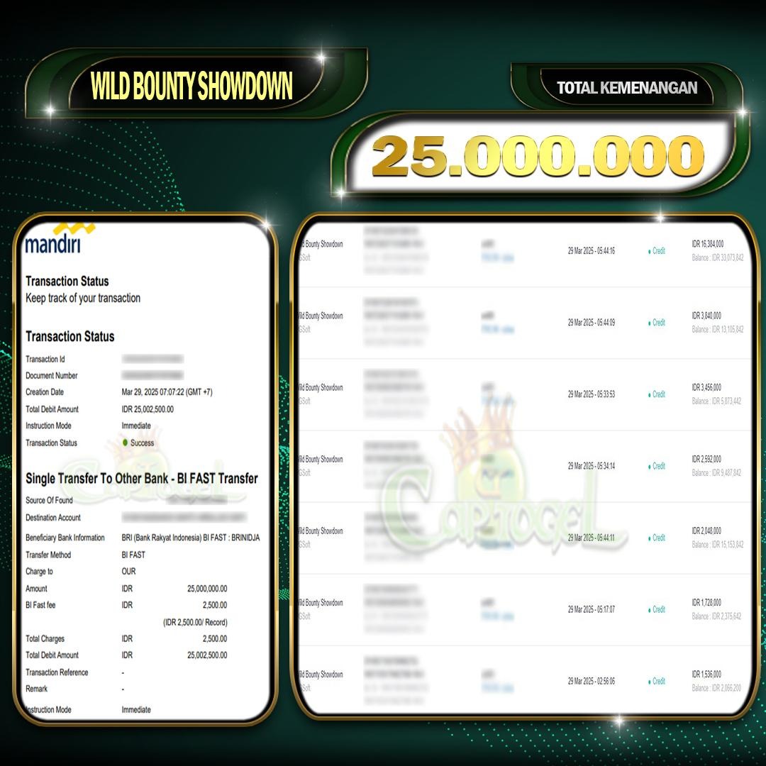 JACKPOT JP WILD BOUNTY SHOWDOWN MENANGKAN CAPTOGEL 29 Maret 2025