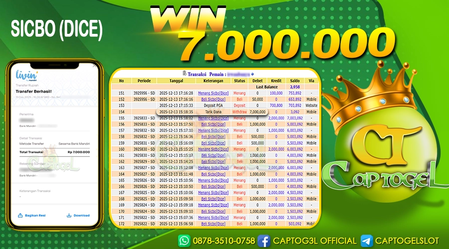 CAPTOGEL – Selamat Kepada Pemenang User ID: lio*** dalam permainan SICBO DICE sebesar Rp 7.000.000 13 DESEMBER 2025 – bermain di situs game online terpercaya yang […]