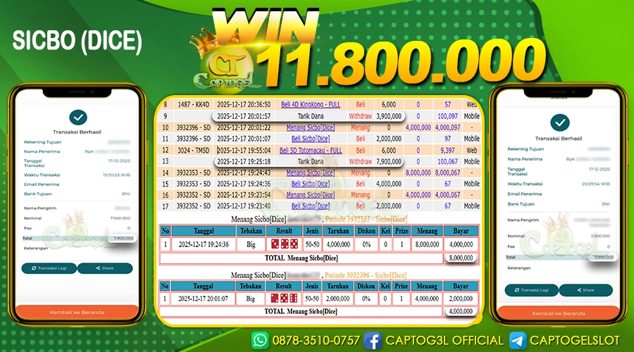 Read moreCAPTOGEL- JP SICBO DICE 11 Juta 17 DESEMBER 2025