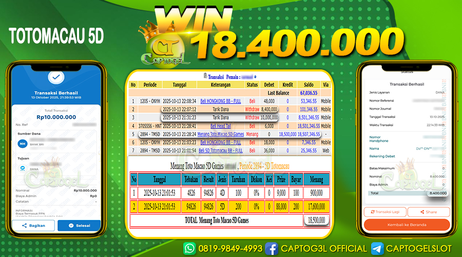Read moreCAPTOGEL- JP TOTOMACAU 5D 18 Juta 13 OKTOBER 2025