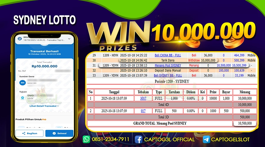 CAPTOGEL – Selamat Kepada Pemenang User ID: 1ed*** dalam permainan SYDNEY LOTTO sebesar Rp 10.000.000 18 OKTOBER 2025 – bermain di situs game online terpercaya […]