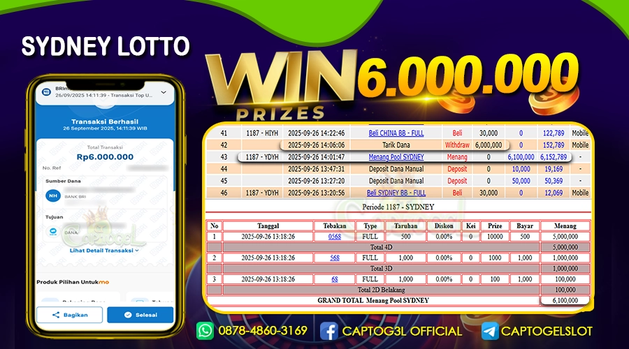 Read moreCAPTOGEL- JP SYDNEY LOTTO 6 Juta 26 SEPTEMBER 2025