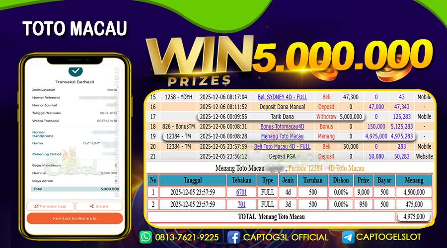 Read moreCAPTOGEL – Selamat Kepada Pemenang User ID: liz*** dalam permainan MAHJONG WAYS sebesar Rp 11.000.000 06 DESEMBER 2025 – bermain di situs game online terpercaya […]