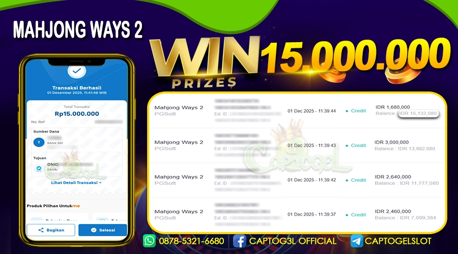 Read moreCAPTOGEL – Selamat Kepada Pemenang User ID: ewa*** dalam permainan MAHJONG WAYS 2 2 sebesar Rp 15.000.000 01 DESEMBER 2025 – bermain di situs game […]