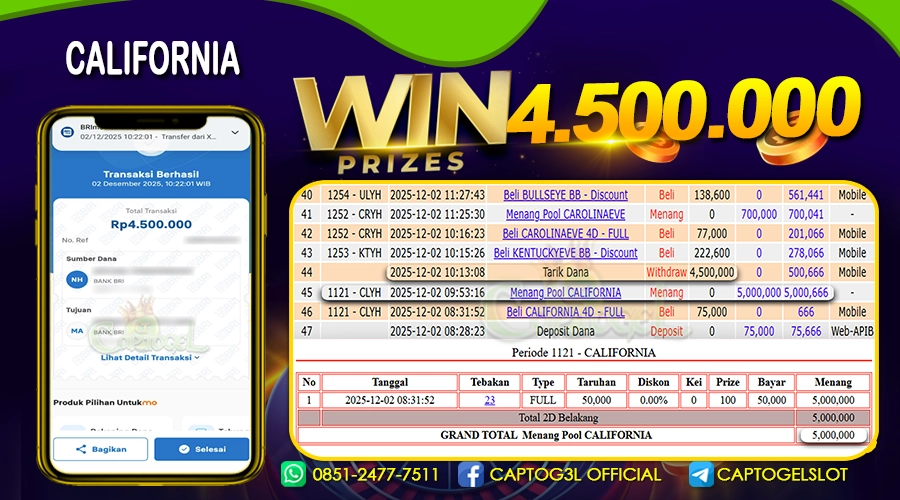 Read moreCAPTOGEL – Selamat Kepada Pemenang User ID: tre*** dalam permainan CALIFORNIA POOLS sebesar Rp 4.500.000 02 DESEMBER 2025 – bermain di situs game online terpercaya yang […]