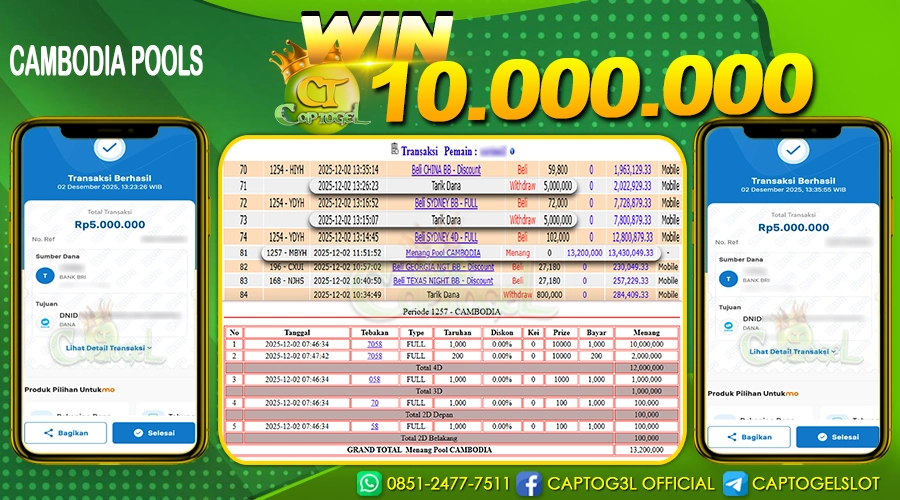 Read moreCAPTOGEL – Selamat Kepada Pemenang User ID: aen*** dalam permainan CAMBODIA POOLS sebesar Rp 10.000.000 02 DESEMBER 2025 – bermain di situs game online terpercaya yang […]