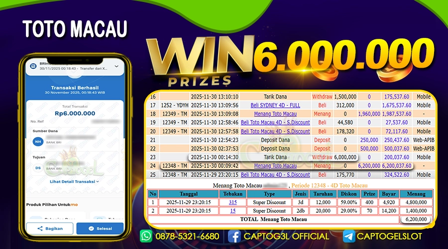 Read moreCAPTOGEL – Selamat Kepada Pemenang User ID: ijd*** dalam permainan TOTO MACAU sebesar Rp 6.000.000 30 NOVEMBER 2025 – bermain di situs game online terpercaya […]