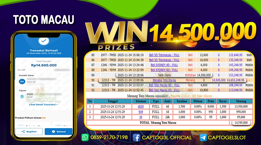 Read moreCAPTOGEL – Selamat Kepada Pemenang User ID: t0h*** dalam permainan TOTO MACAU sebesar Rp 14.500.000 24 NOVEMBER 2025 – bermain di situs game online terpercaya […]