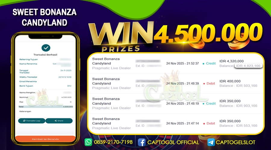 Read moreCAPTOGEL – Selamat Kepada Pemenang User ID: lpp*** dalam permainan SWEET BONANZA CANDYLAND sebesar Rp 4.500.000 24 NOVEMBER 2025 – bermain di situs game online […]