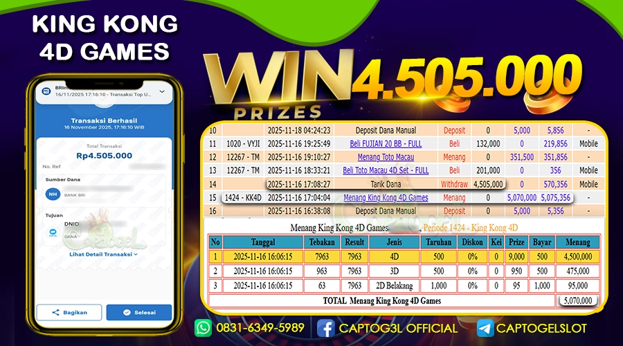 Read moreCAPTOGEL – Selamat Kepada Pemenang User ID: 6od*** dalam permainan KING KONG 4D sebesar Rp 4.505.000 17 NOVEMBER 2025 – bermain di situs game online […]