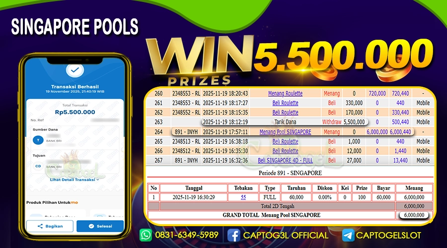 Read moreCAPTOGEL – Selamat Kepada Pemenang User ID: d3n*** dalam permainan SINGAPORE POOLS sebesar Rp 5.500.000 19 NOVEMBER 2025 – bermain di situs game online terpercaya […]