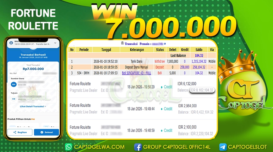 CAPTOGEL- JP FORTUNE ROULETTE 7 Juta 18 JANUARI 2026
