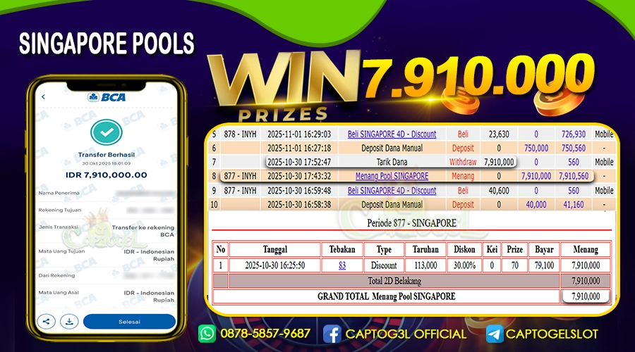 Read moreCAPTOGEL – Selamat Kepada Pemenang User ID: ge2*** dalam permainan SINGAPORE POOLS sebesar Rp 7.900.000 30 OKTOBER 2025 – bermain di situs game online terpercaya […]