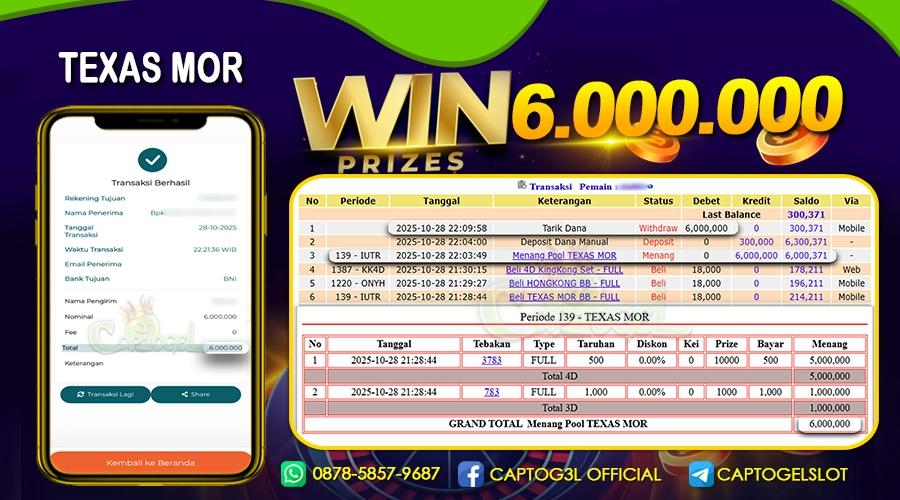 Read moreCAPTOGEL – Selamat Kepada Pemenang User ID: yuw*** dalam permainan TEXAS MORNING sebesar Rp 6.000.000 28 OKTOBER 2025 – bermain di situs game online terpercaya […]