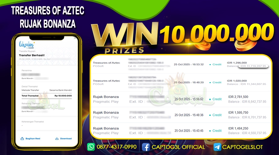 Read moreCAPTOGEL – Selamat Kepada Pemenang User ID: rei*** dalam permainan TREASURES OF AZCTEC RUJAK BONANZA sebesar Rp 10.000.000 25 OKTOBER 2025 – bermain di situs […]