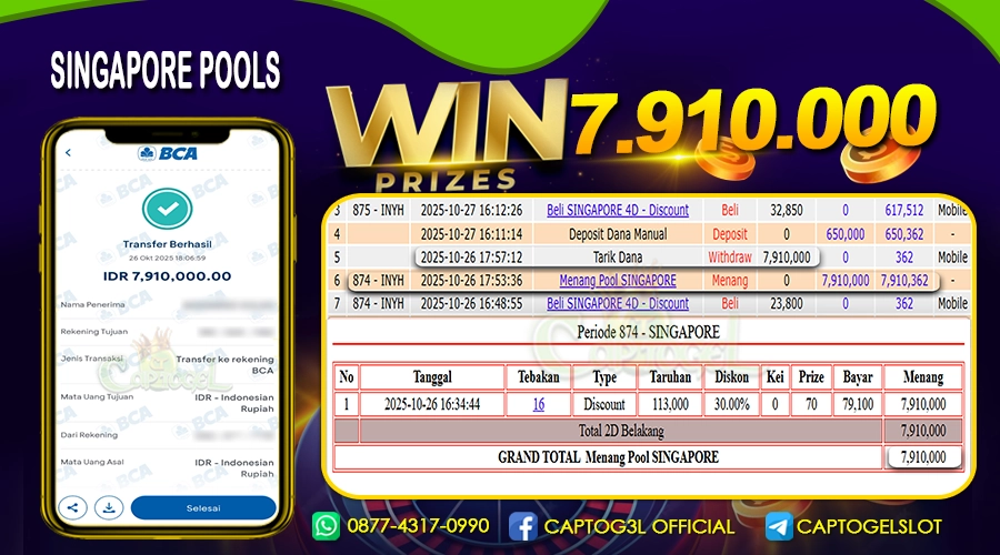 Read moreCAPTOGEL – Selamat Kepada Pemenang User ID: iqb*** dalam permainan SINGAPORE POOLS sebesar Rp 7.900.000 26 OKTOBER 2025 – bermain di situs game online terpercaya […]