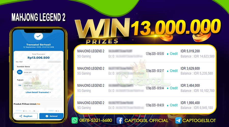 Read moreCAPTOGEL – Selamat Kepada Pemenang User ID: ag2*** dalam permainan MAHJONG LEGEND 2 sebesar Rp 13.000.000 12 SEPTEMBER 2025 – bermain di situs game online […]