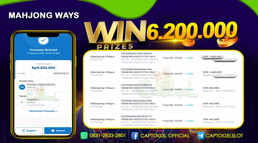 Read moreCAPTOGEL – Selamat Kepada Pemenang User ID: fey*** dalam permainan MAHJONG WAYS sebesar Rp 6.200.000 17 AGUSTUS 2025 – bermain di situs game online terpercaya […]
