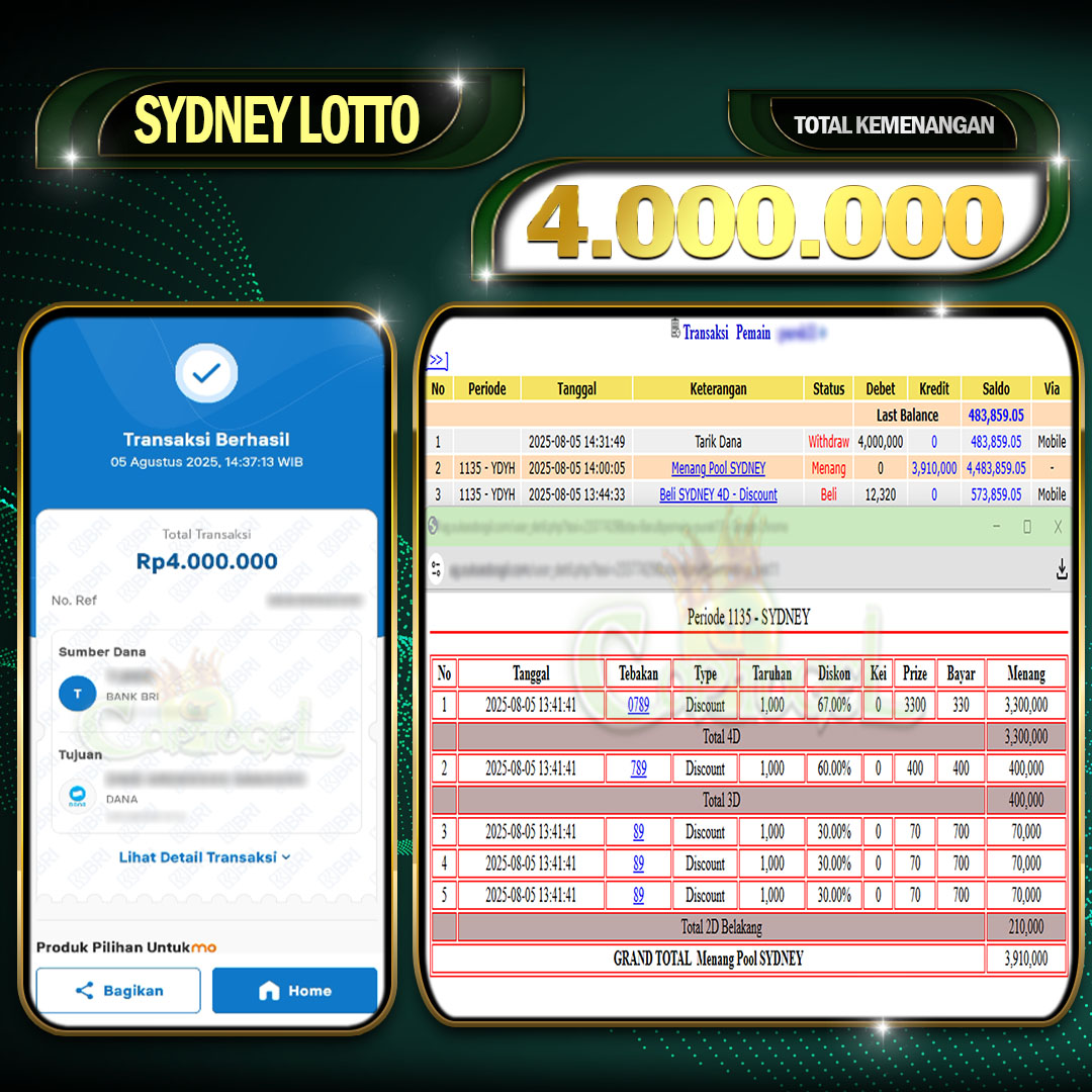 Read moreCAPTOGEL – Selamat Kepada Pemenang User ID: caa*** dalam permainan SYDNEY LOTTO sebesar Rp 4.000.000 05 AGUSTUS 2025 – bermain di situs game online terpercaya […]