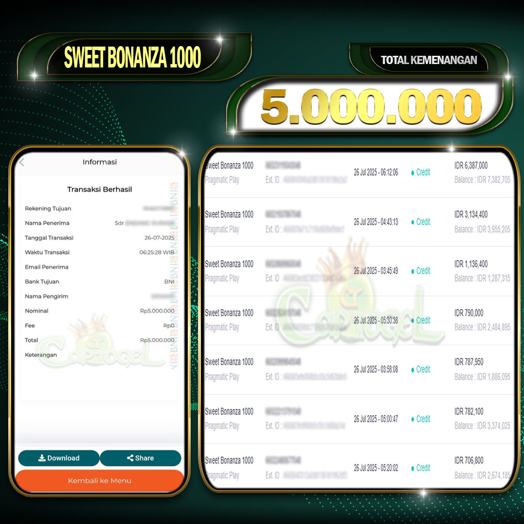 Read moreCAPTOGEL – Selamat Kepada Pemenang User ID: vir*** dalam permainan SWEET BONANZA 1000 sebesar Rp 5.000.000 26 JULY 2025 – bermain di situs game online […]