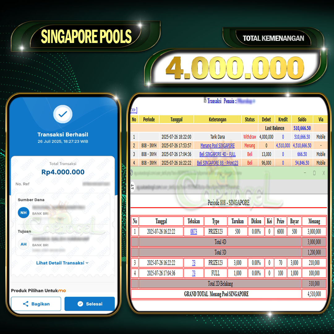 Read moreCAPTOGEL – Selamat Kepada Pemenang User ID: glg*** dalam permainan SINGAPORE POOLS sebesar Rp 4.000.000 26 JULY 2025 – bermain di situs game online terpercaya […]