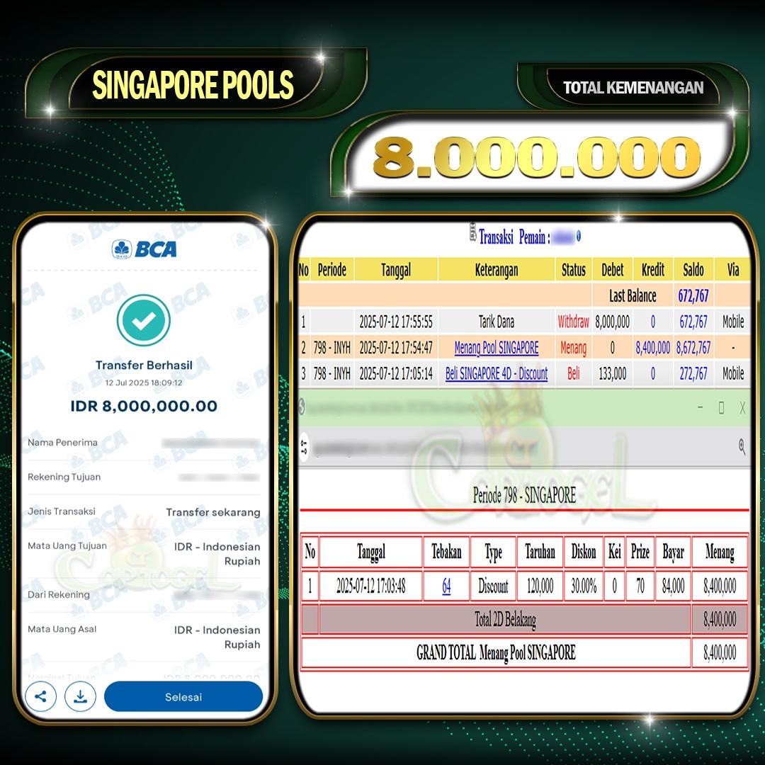 Read moreCAPTOGEL – Selamat Kepada Pemenang User ID: dri*** dalam permainan SINGAPORE POOLS sebesar Rp 8.000.000 12 JULY 2025 – bermain di situs game online terpercaya […]