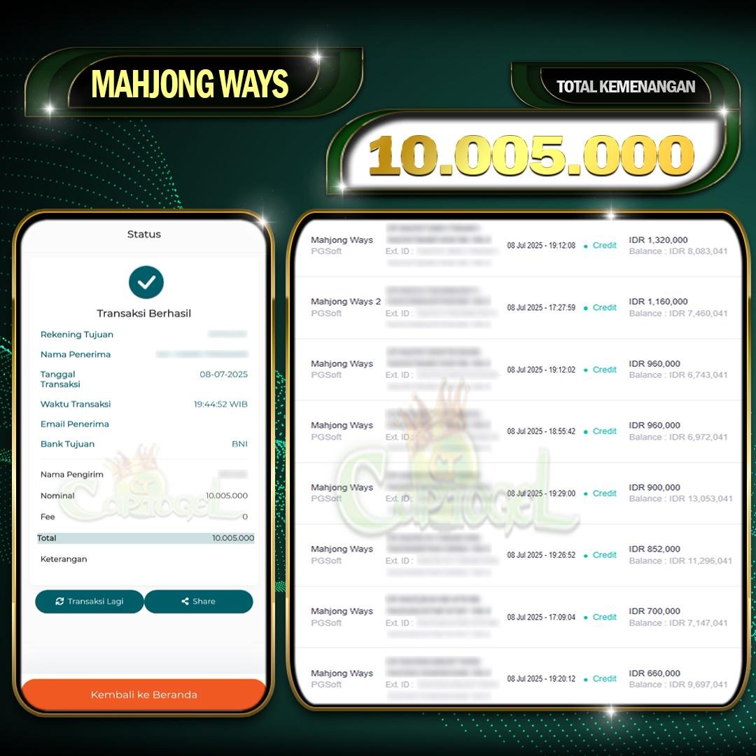 Read moreCAPTOGEL – Selamat Kepada Pemenang User ID: sye*** dalam permainan MAHJONG WAYS sebesar Rp 10.000.000 08 JULY 2025 – bermain di situs game online terpercaya […]