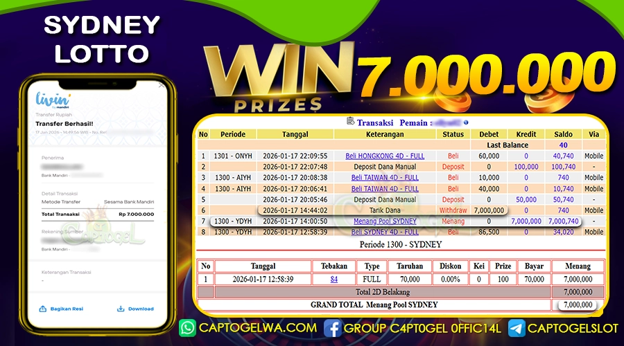 CAPTOGEL- JP SYDNEY LOTTO 7 Juta 17 JANUARI 2026